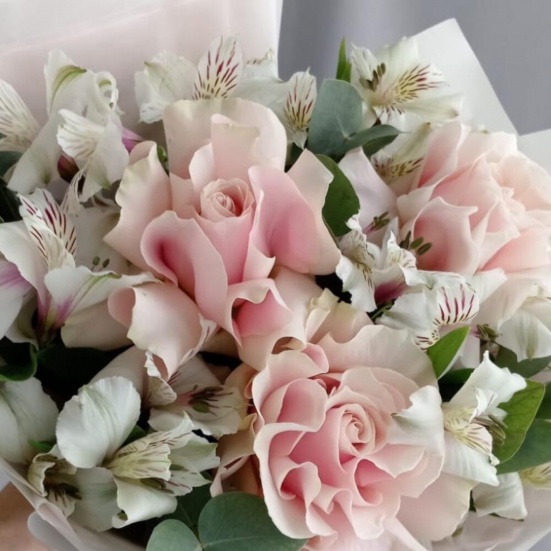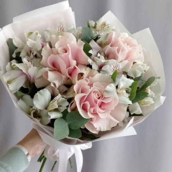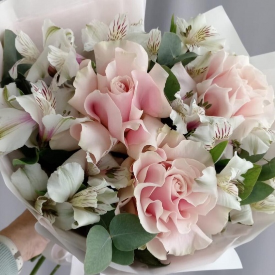 Букет из 3 французских роз и Альстромерии в Великих Луках