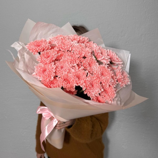 Букет из 5 персиковых хризантем