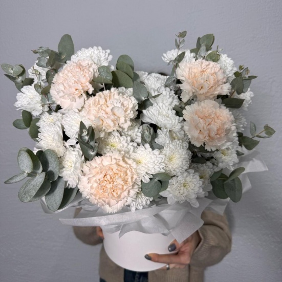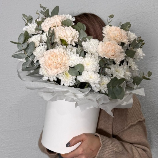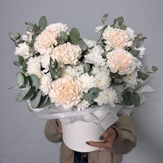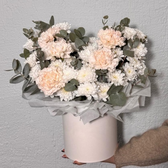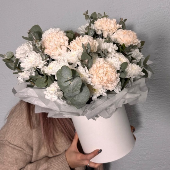 Коробка из кустовых хризантем и диантуса в Великих Луках